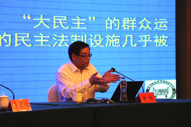 图为中国法学会副会长、中国社会科学院学部委员李林作专题讲座